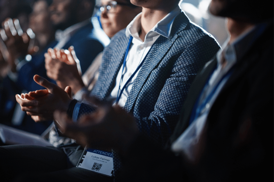 Professionals networking at a conference