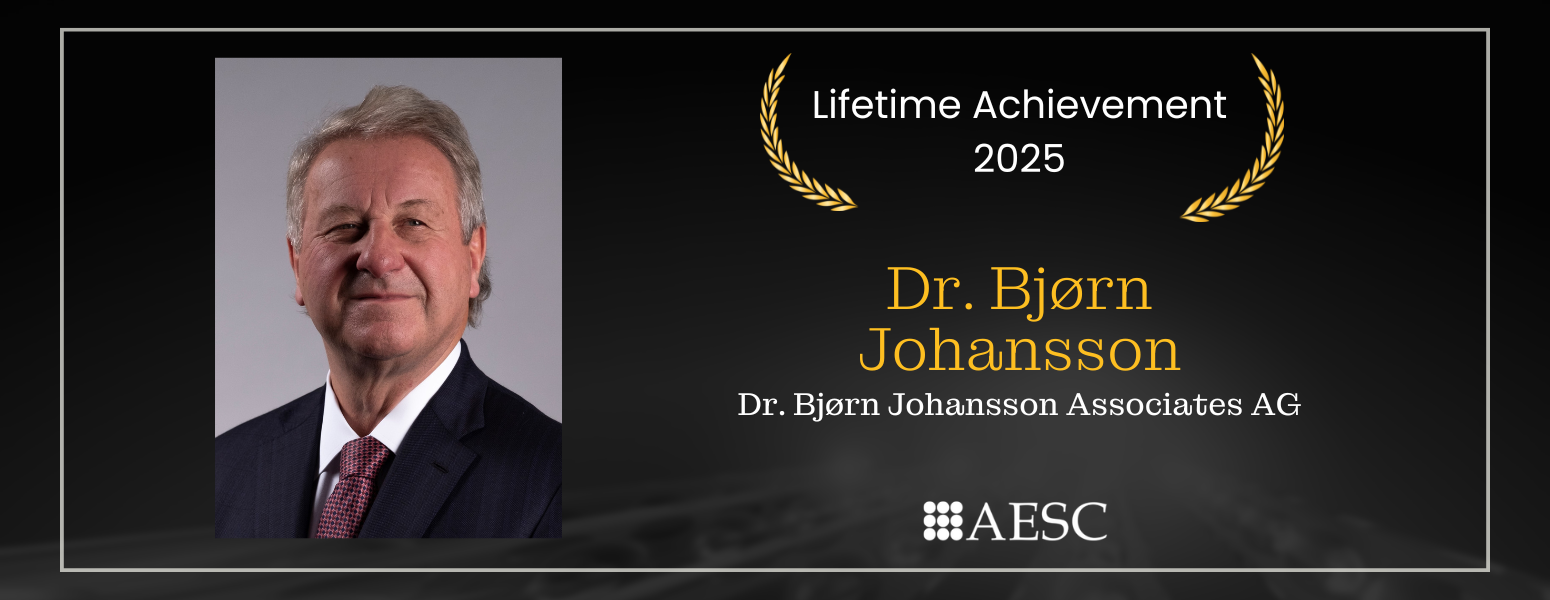 The Association of Executive Search and Leadership Consultants (AESC), the global association representing the $20+ billion executive search and leadership consulting profession, presented Dr. Bjørn Johansson, Founder, Chairman & Chief Executive Officer of Dr. Bjørn Johansson Associates AG, with AESC’s prestigious Lifetime Achievement Award.