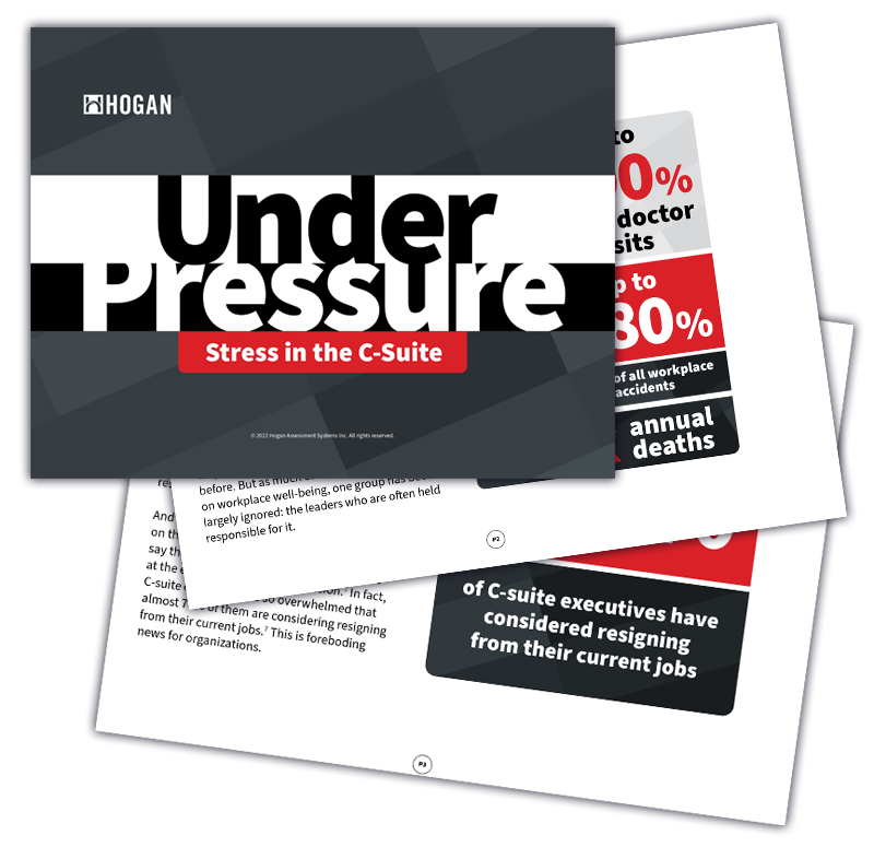 This report examines how high levels of stress led to the Great Resignation, how to improve the well-being of the C-suite, understanding the role personality plays, and how assessments can uncover types of stress responses. Under Pressure: Stress in the C-Suite dives into the Hogan Development Survey, which measures counterproductive personality characteristics, enabling leaders to identify and take corrective action to reduce stress.
